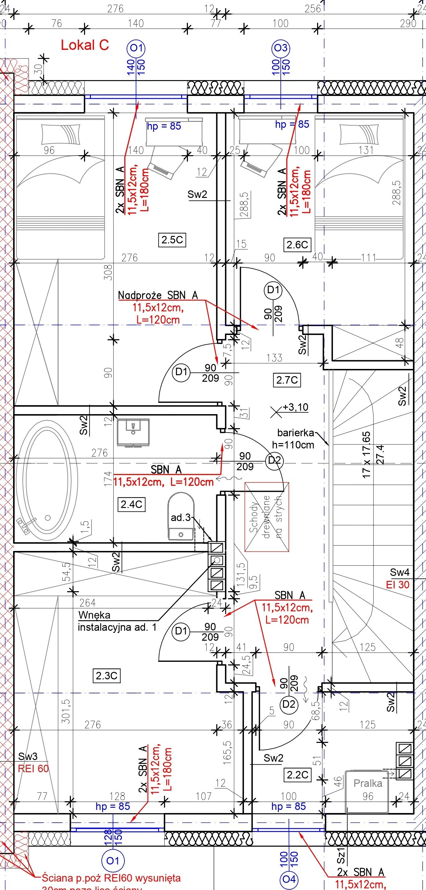- strych nieużytkowy o pow. około 15m2